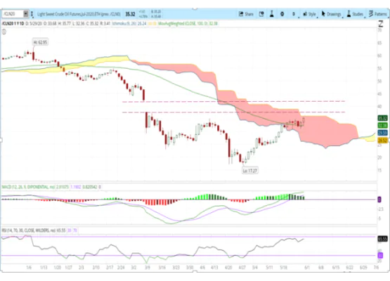 Teknik olarak; Temmuz vadeli WTI petrol fiyatı geçen hafta iniş-çıkışlı seyir sonrası Cuma günü yükselerek 100 günlük hareketli ortalaması üzerinde önemli dirençler bölgesine yaklaştı. Öncelikle, İchimoku bulutu üst sınır direnci ve hemen ardından Mart başında kabaca 38-42 dolar gap (boşluk) direncine yaklaştı. Şu haliyle, göreceli güç endeksinin (RSI) aşırı pahalı bölgeye yaklaşması ve MACD’nin yükselme momentumunda azalma 38.00 dolar üzerinde petrol fiyatını gerçekçi göstermiyor. Bu seviye 'boğa ve ayı kampının dalaş alanı' boğa kampı yükselme trendin devamı için bahane arayacaklardır ama ekonomik görünümün sürpriz şekilde iyileşmesi gerekir. Aşağı yönde 30.00 dolar önemli bir destek olarak görünmeye başladı. Sanırım, kısa vade için yükselme eğiliminin devamı öncesinde 32.00-30.00 dolar aralığına geri çekilme makul bir beklentidir.