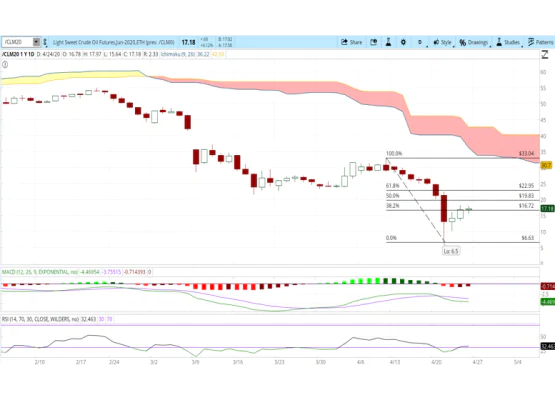 Teknik olarak; Haziran vadeli WTI petrol fiyatı geçen hafta spot piyasanın tarihi çöküşü ile 6.50 dolar/varile geriledikten sonra haftayı short covering işlemleri ile 17.00 dolar/varil üzerinde kapattı. Çöküş öncesinde 30.00 dolar/varil direnç seviyesi olarak görünürken (Mart ayındaki boşluk-gap açılışı) bu hafta %50 fibo. direnci 20.00 varil civarında görülüyor. Olağanüstü dengesiz bir fiyatlama ve volatilite sürecindeyiz, manşet verilerin olumsuzluğu devam ederse satıcılar tekrar yüklenebilirler, tedbir!. Unutulmasın, hafta sonuna doğru toparlanma ağırlıklı olarak açık pozisyon kapatma işlemlerinden kaynaklanıyor.