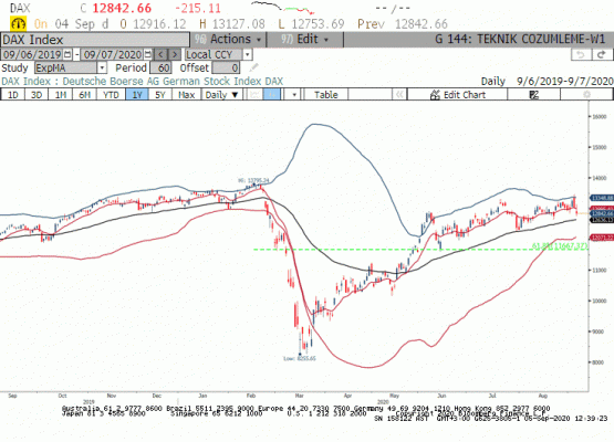 Teknik olarak; . DAX endeksi 60 günlük üssel hareketli ortalaması olan 12636 üzerinde 13 bin üzerinde güç toplayarak 13250-13500 boşluğunu doldurmak isteyebilir. Endekste kırılmanın yakın olduğundan bahsettik piyasanın satıcıların kontrolüne geçtiği senaryoda ise ilk destek 11667 olarak görülüyor.