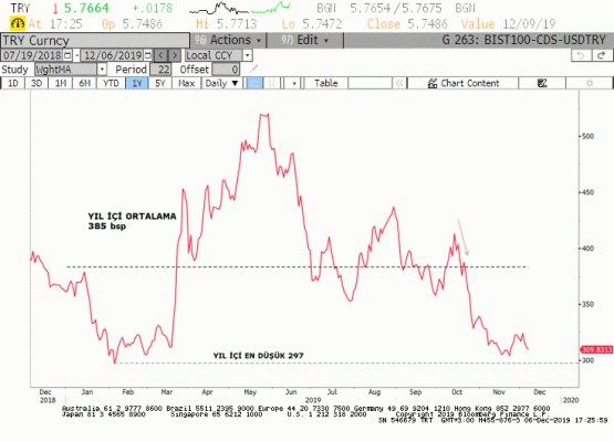 5 yıllık CDS primi geçen hafta 304 baz puandan 322 baz puana kadar yükseldi. Diğer yandan USDTRY opsiyon oynaklık oranları ve gösterge tahvil faizlerinde yukarı yönlü bir hareket izlemedik. Bu bağlamda kurdaki yukarı yönlü hareketlerin önemli bir trende dönüşmesini beklemiyoruz. Yatay bant aralığında çift yönlü fiyat hareketi devam edecektir.
