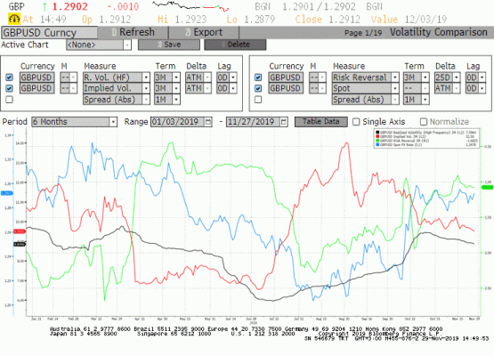 Opsiyonlardan elde edilen Sterlin 3 aylık zımni(implied) oynaklık oranı gerilemeye geçen hafta da devam etti. Bu durum piyasada Sterlin lehine olan risk algılamasının devam ettiğini gösteriyor.