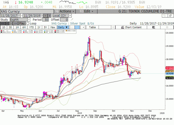 Geçen hafta 100 günlük üssel ortalama 17.08 direnç olarak çalıştı. Daha yukarıda kuvvetli direnç 50 günlük üssel ortalamanın geçtiği 17.30 usd seviyesi bulunuyor. Kuvvetli ve kritik destek ise 200 günlük üssel ortalamanın geçtiği 16.57 usd seviyesidir. Hafta içinde 16.57-17.30 aralığında fiyat bekliyoruz. 16.57-17.30 aralığından çıkılması durumunda kırılma yönünde hareketin kuvvetlenebileceğini ve trende dönüşebileceğini düşünüyoruz.