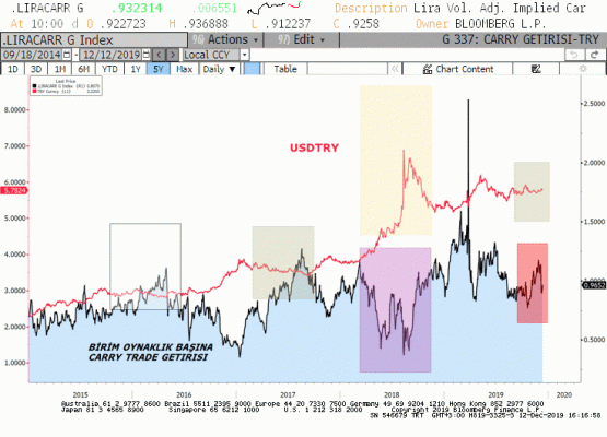 Opsiyonlardan elde edilen 1 aylık USDTRY beklenen oynaklık oranı(implied volatility) ile düzeltilmiş TL carry getirisi 19 kasımdan beri 1'in üzerinde. Bu durum TL talebini artıracak bir faktör olarak TL açısından pozitif fiyatlamaları destekliyor. Dolayısıyla beklenmedik olumsuz gelişmeler ortaya çıkmazsa USDTRY kurunda bu hafta kısmi satıcılı yatay fiyatlamalar bekliyoruz.
