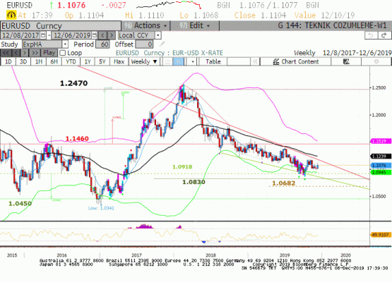 Teknik olarak 200 günlük üssel ortalama ve 2018 yılından gelen kritik alçalan trend direncinin geçtiği 1.1160-1.1170 seviyeleri kuvvetli ve kritik dirençler olarak takip edilmelidir. Bu seviyelere yakın satış gelebilecek iken kırılması halinde orta vadeye yayılan bir yükseliş trendi söz konusu olabilir. Aşağıda ise son beş haftadır pariteyi tutan 1.10 seviyesi kritik bir destek olarak takip edilmelidir.