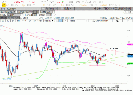 Teknik olarak geçen haftanın en düşük seviyesinin 12 haftalık üssel ortalamanın geçtiği 108.40 olması ve bu hareketli ortalamanın kasım ayından beri kuvvetli destek olarak çalışması piyasada yukarı doğru gitme isteğinin teknik olarak hala daha güçlü olduğuna işaret ediyor. Bu nedenle 108.40 kırılmadığı sürece bu hafta yukarı yönlü bir hareket bekliyoruz.