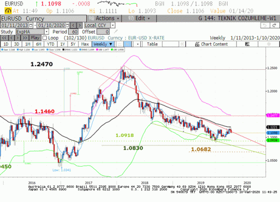 Alman-ABD 10 yıllık faiz farkının yukarı yönlü seyretmesi, ABD-Çin birinci faz ticaret anlaşması ve Euro Bölgesi ekonomik verilerinde toparlanma pariteyi yukarı yönlü destekleyen katalizörler olmaya devam ediyor. Trump 15 ocakta faz 1 anlaşmayı imzalayacağını ve faz iki görüşmeleri için de Pekin'e gideceğini belirtti. Ticaret anlaşması ile ekonomik beklentilerdeki kötümser durumun düzelmesi Euro için pozitif ve güvenli liman olarak talep gören varlıklardan olan Dolar için negatif bir durum.
