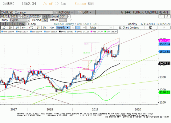 Altın ons geçen hafta ABD-İran geriliminin tırmanması sonrasında hafta içinde 1611 usd seviyesini test etti. Devamında hem İran hem de ABD başkanı Trump tarafından yapılan açıklamalar ile azalan endişeler Altın'ın kazançlarını geri vermesine neden oldu.