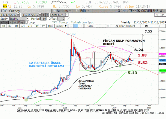 Aşağı yönlü hareketlerde geçen haftanın dip seviyesi 5.7330 devamında 5.70 seviyeleri takip edilecek önemli ara destekler iken, 200 günlük üssel ortalama 5.6630 ve 250 günlük üssel ortalama 5.6050 seviyeleri dip olarak kabul edilebilecek kuvvetli ana destek seviyeleridir.