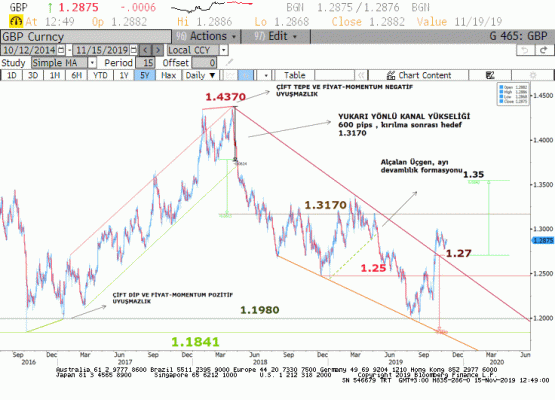 2020 ocak sonuna uzayan Brexit süreci ve 12 aralıktaki erken seçim belirsizliğin devam etmesine neden olurken, Sterlin opsiyon oynaklık oranları geçtiğimiz hafta düşüşüne ara verdi ve yükselişe geçti Dolayısıyla kısa vadede Sterlin'de konsolidasyon ve momentum kaybı görülebilir.