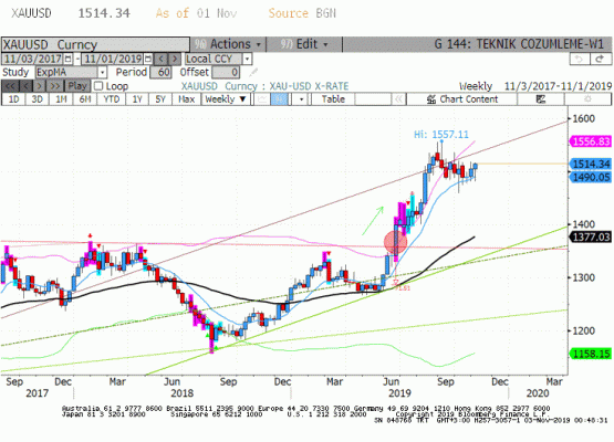 ABD-Çin arasındaki sınırlı birinci anlaşma, FED'den aralık ayında faiz indirim beklentisinin olmaması ve DXY ile ABD tahvil faizlerindeki yukarı yönlü hareket Altın piyasasında baskı unsuru olmaya devam etmektedir.