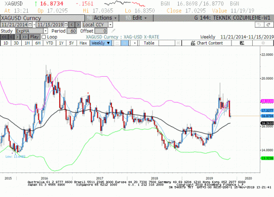 Gümüş geçen hafta 16.64-17.10 aralığında seyretti ve haftayı sınırlı pozitif tamamladı.