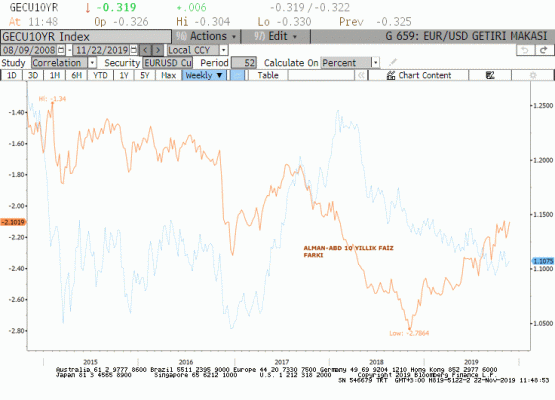 ABD-Çin arasındaki sınırlı ticaret anlaşmasına ilişkin belirsizlik geçen hafta Euro'yu baskıladı. Çin ticaret bakanı dün yaptığı açıklamada Ticaret savaşı ek gümrük vergileriyle başlamıştı ve onların kaldırılmasıyla sonlanmalı, bu, iki tarafın uzlaşmaya varması için önemli bir koşul' mesajını verdi. Çin'in ABD'den tarımsal ürün ithalatına yönelik belirsizlikler devam ederken, CNBC kaynaklı habere göre ABD tarifeleri geri çekmek karşılığında Çin’den fikri ve sınai mülkiyet hakları ve zorunlu teknoloji transferi konularında güçlü taahhütler istiyor ve bu durum anlaşmanın yapılmasını geciktiriyor. Trump'ın ekonomi danışmanı Larry Kudlow ise Çin ile birinci aşama ticaret anlaşmasına iki tarafın yakın temas halinde çalışmasıyla yaklaşıldığını söyledi. Eğer anlaşma yapılır ve Alman ekonomisi ile yakın ilişkileri olan Çin ekonomisine ilişkin beklentiler iyileşir ise bu durum Euro'ya olumlu yansıyacaktır.