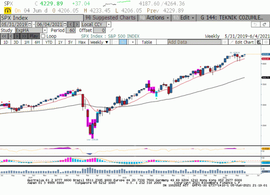 Geçtiğimiz hafta en düşük 4167 seviyesini gören S&P500 endeksi her durumda yükseliş denemeleri yapacağı ortamı bulmak istiyor. Geçtiğimiz hafta benzer bir bakış açısı ile endeksin 4229 ile Mayıs ayı yüksek seviyesi olan 4238’e yakın bir kapanış yaptığını gördük. Bunun yanında Biden hükümeti ABD yerleşik ve uluslararası şirketler için kurumsal vergi oranlarını güncelliyor. Son haber akışına göre G-7 liderleri büyük piyasa değerli teknoloji şirketleri için asgari kurumsal vergi oranının %15 olması konusunda anlaştı. Bu toplantı yılın geri kalanında pandemi etkilerini silmeye çalışan G-7 ülkelerinin ekonomik anlamda belirleyeceği yol haritası ile önemli görülüyor. Dünya genelinde kurumlar vergisi yüksek olanlar ile kıyaslandığında uluslararası teknoloji şirketleri için %15 civarında vergi rahatsız edici görülmüyor. Bu güncellemede geçtiğimiz yıllara kıyasla yükselişe rağmen artışın şirketlerin rekabet koşullarını etkilemeyecek düzeyde olacağının anlaşması ile teknoloji hisse senetlerinde alımlar gözlendi. Bu hafta Kanada ve Avrupa Merkez Bankası toplantıları yanında Perşembe günü ABD Mayıs ayı tüketici enflasyonu ekonomik takvimi oluşturuyor. Mayıs ayında aylık bazda %0.4 artış beklenen manşet enflasyon gerçekleşmesinin tapering tartışmalarını alevlendirmediği ortamda endeks yükselişini sürdürebilir.