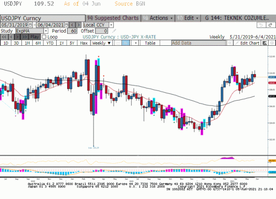 Geçtiğimiz hafta Japonya tarafında açıklanan ekonomik verilerden destek bulamayan Japon Yeni Perşembe günü açıklanan ABD ekonomik verileri ardından 110.33 seviyesine yükseldi. Neyse ki imdada haftanın son işlem gününde açıklanan tarım dışı istihdam verisi yetişti. Teknik olarak, 200 haftalık üssel haraketli ortalama 108.40 üzerinde yükselişi sürdüreceğini düşündüğümüz USDJPY paritesinde bu hafta 110.50 önemli direnç olarak görülüyor. Büyüme ve faiz oranı farkı USDJPY’in yukarı yönlü hareketini destekliyor. Bir tarafta enflasyon geçici mi kalıcı mı olacak mı tartışması yapılan ABD ekonomisi diğer tarafta orta vadeli enflasyon hedefinde uzakta olan Japonya ekonomisi; mevcut koşullarda Japon Yeni’ni güvenli para birimi olarak öne çıkaracak bir gelişme olmadıkça arada yaşanan aşağı yönlü düzeltmeler piyasa tarafında alış fırsatı olarak görülebilir.