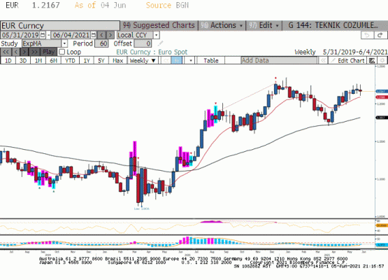 Geçtiğimiz Cuma Haziran vadeli opsiyon kontratlarının son işlem günüydü ve piyasa Eylül vadeye geçti. 03 Haziran Perşembe günü ABD tarafında açıklanan istihdam verileri ve Markit PMI servis sektör endeksi beklentilerden iyi gerçekleşti. Bu duruma FED üyelerinden Parker’ın FED tapering (varlık alımlarını azaltma) konusunu tartışmaya başlamalı açıklamaları eklenince Dolar Endeksi (DXY) 90.50 seviyesine doğru yükseldi. Doları değer kazanma eğiliminde olduğu ortamda haftalardır 1.2250 seviyesini yukarı yönde geçmekte zorlanan Euro/dolar paritesi tarım dışı istihdam verisi en düşük 1.2104 seviyesini gördü. Geçtiğimiz günlerde bazı FED üyeleri enflasyonun geçici mi kalıcı mı olacağı konusunda görüş bildirirken istihdam piyasasına önem atfetti. Bu nedenle piyasa oyuncuları önümüzdeki birkaç haftalık piyasa hareketi ve 16 Haziran FED toplantısı için Mayıs ayı istihdam verisini merakla bekliyordu. Mayıs ayı istihdam gerçekleşmesi Nisan ayında olduğu gibi piyasa beklentilerinden fazla uzakta gerçekleşmedi. Ancak ayılık istihdam rakamı 559 bin olarak 675 olan ortalama piyasa beklentisi altında gerçekleşti. İşsizlik oranı %5.8 olarak son 14 ayın en düşük seviyesinde gerçekleşirken pandemi önceki seviyeler için sabretmek gerekiyor. Son 12 ayda %61.4 ile %61.7 arasında kalan işgücü katılım oranı Mayıs ayında %61.6 olarak gerçekleşti. Kısaca beklentilerin altında istihdam yaratan ABD ekonomisinde veri küresel piyasaların risk alam eğilimini geri getirdi. Bu hafta Perşembe günü yapılacak olan Avrupa Merkez Bankası toplantısında bankanın varlık alımlarını azaltmak bir yana artırabileceği konuşuluyor. Pandemi sonrası ekonomik canlanma ile Avrupa ekonomisi yılın 3. Çeyreğinde zirve yapabilir. Anlaşılan bu dönemde ECB desteğini tam gaz sürdürerek büyüme hızının sonraki çeyreklere de yansımasını istiyor. Haftayı 1.2167 seviyesinde kapatan Euro/dolar paritesi bu hafta 1.2200 üzerinde kapanışlar ile 1.2300 seviyesine doğru yükselişini sürdürebilir.