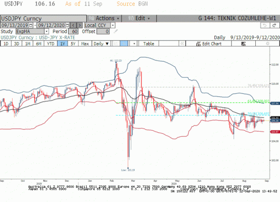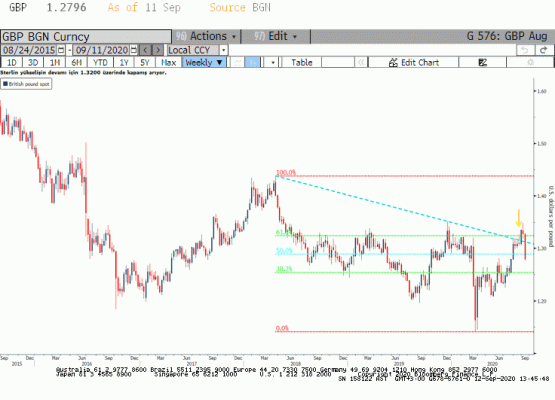 GBPUSD Paritesi: Geçtiğimiz hafta yapılan İngiltere Merkez Bankası (BOE) toplantısı sonrasında anlıyoruz ki para piyasasının 2021 yılında faiz indirimi fiyatlaması abartılı değil ve anlaşmasız Brexit senaryosunda negatif faiz poitikasına geçebilir. Cuma günü açıklanan Ağustos ayı perakende satışlar verisi %0.8 ile beklentilerin üzerinde artış gösterdi. Ancak Brexit belirsizliği GBPUSD paritesinde yukarı yönlü tepki yerine düşüşe sınır koydu. Ömümüzdeki Brexit belirsizliği ve pandemi etkisi ile Sterlin tarafındaki pozisyonlanmanın pozitife döneceğini beklemek iyimserlik olur. Bu durumda GBPUSD paritesinde yönü Amerikan Doları belirleyecek. Hafta ortasında yapılan toplantı sonrası yapılan güncellemede FED üyelerinin 2023 yılı sonuna kadar faiz artırımı beklemediğini gördük. Uzun süreli düşük faiz ortamı ve gerektiğinde yeni adımlar ile FED ekonomiyi destekleme sözünü yineledi. Öte yanda geciken ama eninde sonunda çıkması beklenen ikinci teşvik paketi yüksek bütçe açığı ve varlık alımları ile desteklenen likidite koşulları bir araya geldiğinde Dolar Endeksi (DXY) Kasım ayı seçimlerine kadar düşüş eğilimini koruyabilir. 08 Kasım 2018 seçimleri sonrasındaki gün Donald Trump'ın seçilmesi ardından Dolar Endeksi %1 değer kazanırken sene sonuna kadar endeksin değer kazancı %6'ya ulaşmıştı. Kısaca Amerikan Doları yeni dönem iktidarı kesinleşinceye kadar huzursuz olacak gibi görünüyor. GBPUSD paritesinde kurtarıcı olarak bu durum öne çıkıyor.