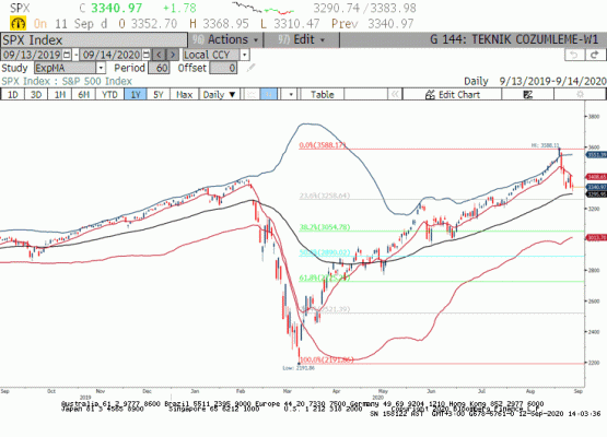 S&P500 Endeksi; Geçtiğimiz hafta yapılan Eylül ayı FED toplantısı öncesinde yükseliş eğilimini koruyan endeks FED sonrası satıcıların kontrolüne geçti. 18 Eylül opsiyonları son işlem gününde ve volatilitede artışş beklentimizi geçtiğimiz hafta ki raporumuzda belirtmiştik. Beklenen oldu ve son dönemde opsiyon piyasasına artan talep ile özellikle 3500 işlem fiyatlı opsiyonlar çevresinde kuvvetli bir çekişme yaşandı. Bu çekişmeyi satıcılar kazandı ve S&P500 endeksi haftayı kritik destek seviyelerinin altında kapadı. ABD tarafında geçtiğimiz açıklanan ekonomik verilerde haftalık işsizlik maaşı başvurularında beklenti üzerinde gerçekleşme, konut piyasasına ilişkin verilerde geri çekilme ikinci teşvik paketine ilişkin umutların azalması hisse senedi negatif olarak düşünülebilir.