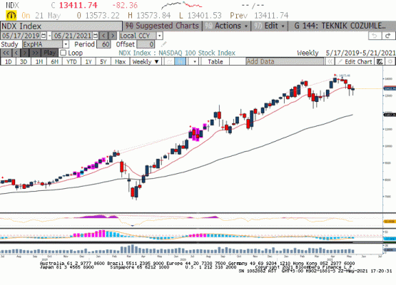 Geçtiğimiz haftaki raporlarımızda Nasdaq endeksinin diğer ABD endekslerine kıyasla zayıf olduğunu ve olası bir geri çekilmenin teknoloji hisse senetleri ile gerçekleşeceğini belirtmiştik. 16 Nisan haftasında en yüksek 14050 seviyesini gören Nasdaq son 5 haftanın dördünü düşüş ile tamamladı. Geçtiğimiz haftaya gelindiğinde küresel hisse senedi piyasasında yükselişin Nasdaq teknoloji hisse senetleri ile başladığını gördük. Hafta içi işlem Aralığı 12994-13573 olurken kapanış 13411 seviyesinde gerçekleşti. Nasdaq endeksinde yükselişin devamı için 13300 üzerinde kapanışlar ile piyasanın güç toplaması gerekiyor. Biden’ın ABD şirketleri için yaptığı vergi düzenlemelerini piyasa kabul etmiş ve benimsemiş görünüyor. Yılın geri kalanında ABD ekonomisi %6.0 üzerinde çeyreklik büyüme rakamını koruyabilir ise teknoloji hisse senetleri 2020 yılı senesinin aşırı değerli imajını üzerinden atarak yükselişini sürdürebilir. Pandemi sonrası aşılama ve teşvik paketleri ile sıra gelmemiş olabilir ancak yılın geri kalanında Çin ile teknolojik yatırımlar konusu önemli ve muhtemelen tekrar tartışılmaya başlayacak. Burada Biden yönetiminin ABD’nin haklarından taviz vermeden bir anlaşma zemini hazırlaması Nasdaq lehine iken o noktaya gelinceye kadar yaşanacaklar piyasada volatilite artışına sebep olabilir. Ancak bu tartışma zemininin ısınması için henüz erken diyebiliriz.