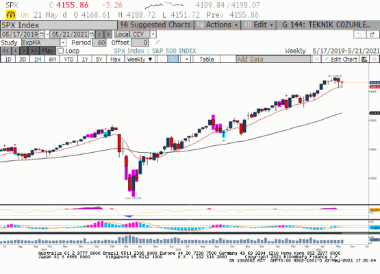 23 Nisan ile başlayan 5 haftanın üçünde eksi kapanış yapan DAX geçtiğimiz haftayı 15538 seviyesinde yükseliş ile kapadı. Mart ayı boyunca ve Nisan ayı ilk yarısında yaşanan yükseliş endekste aşırı alım bölgesinde biriken teknik göstergeler ile düzeltme yaşanabileceğini işaret ediyordu. Almanya ekonomisi Nisan ayı ile beraber toparlanma emareleri gösterirken ve yılın kalanında iyi bir ekonomik performans beklenirken düzeltme olarak gördüğümüz satışlar 14800 üzerinde dengelenme ile son bulabilir ve küresel risk alam iştahının devamı ile DAX endeksi 15500 üzerinde yükseliş eğilimini koruyabilir. FED ’in varlık alımları ve tapering tartışmaları ile ABD endekslerinde geri çekilmenin DAX’ı da negatif etkileyeceği kuşkusuz ancak derin bir düzeltme yerine bant içi hareket ile yatırımcıların gelişmeleri takip etme ihtimalini yüksek görüyoruz.