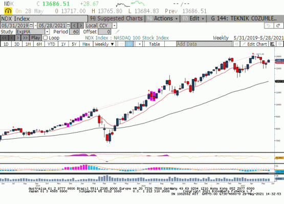 14 Mayıs haftasında 12967 düşük seviyesini gören Nasdaq endeksi sonraki iki haftada yaşanan yükseliş ile 4 haftalık üssel hareketli ortalaması olan 13600 üzerinde kapanış yapmayı başardı. Hafta başında Nasdaq endeksi içinde teknoloji hisse senetlerinin ABD endekslerinde yükselişe öncülük ettiğini gördük. Biden hükümeti ABD yerleşik ve uluslararası şirketler için kurumsal vergi oranlarını güncelliyor. Bu güncellemede geçtiğimiz yıllara kıyasla yükselişe rağmen artışın şirketlerin rekabet koşullarını etkilemeyecek düzeyde olacağının anlaşması ile teknoloji hisse senetlerinde alımlar gözlendi. Dünya genelinde kurumlar vergisi yüksek olanlar ile kıyaslandığında %15 civarında vergi rahatsız edici görülmedi. Bunun yanında ABD Doları’nın değer kaybını sürdürmesi uluslararası şirketler için avantaj olarak görülüyor. Uluslararası şirketler deyince de ilk sırada %51 ağırlık ile teknoloji şirketleri geliyor. Küresel para arzının zirveye ulaştığı 2020 senesinde yüksek performansı ile öne çıkan teknoloji şirketleri 2021 ilk çeyrekte bu yükselişi sindirmeye çalıştı. Ancak yılın geri kalanında yüksek büyüme ve artan uluslararası ticaret hacmi bu şirketler için avantaj ve teknoloji hisse senetleri bir süreliğine ara verdiği taşıyıcı görevini tekrar üstlenebilir.