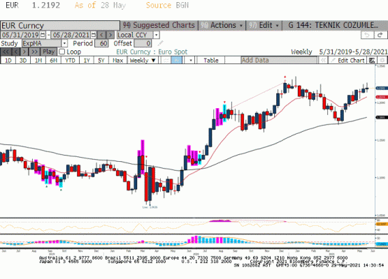 Haziran ayı FED toplantısında 10 gün önce FED üyeleri suskunluk dönemin eğirecek. Ancak şimdilerde üyelerden enflasyon geçici mi yoksa önlem mi almak gerekiyor konusu ile ilgili farklı açıklamalar geliyor. Bazı üyeler ABD’de enflasyonun pandemi sonrasında emtia piyasasında arz/talep dengesinin bozulması ile geçici olduğunu ve 2022 senesinde normalleşme beklerken bazı üyeler bankanın önümüzdeki toplantılarda tapering (varlık alımlarını azaltma) konusunu tartışması gerektiğini düşünüyor. Geçtiğimiz hafta üyelerden gelen açıklamalar ekonomik verilerin önüne geçti diyebiliriz. 25 Mayıs seansında en düşük 89.535 seviyesini gören Dolar Endeksi (DXY) sonraki ki günde kısa pozisyon kapama faaliyeti ile 90.00 etrafında fiyatlamaya geçti. Görünen o ki Dolar Endeksi 89.50 altında fiyatlamada en azından şimdilik istekli değil ve FED toplantısına kadar 89.50-91.00 Aralığında zaman harcayabilir. Euro bölgesinde aşılama hız kanadı ve normalleşme başladı. Avrupa sınır kapılarını açtı ve Haziran-Ağustos dönemi seyahat sezonu ver servis sektörü katkısı ile yılın üçüncü çeyreğinde Avrupa’da ekonomik büyüme zirve yapabilir. Öte yanda ABD ekonomisinin bir asım önde giderek yılın ikinci çeyreğinde iyi bir performans göstermesi bekleniyor. Bu çerçevede bakıldığında Euro Bölgesinde artan iş dünyası güvenine ve Mayıs ayında PMI imalat ve servis sektör endekslerine rağmen ABD ekonomisi ve para birimi Döviz piyasasındaki liderliğini ve diğer para birimlerinde yön belirleme özelliğini koruyor. Geçtiğimiz hafta da geçilemeyen 1.2250 seviyesi artık döviz piyasası için önemli bir sınır iken Dolar Endeksinde olduğu gibi Euro/dolar paritesinin bir süre dar bir aralıkta zaman harcayacağını düşünüyoruz.