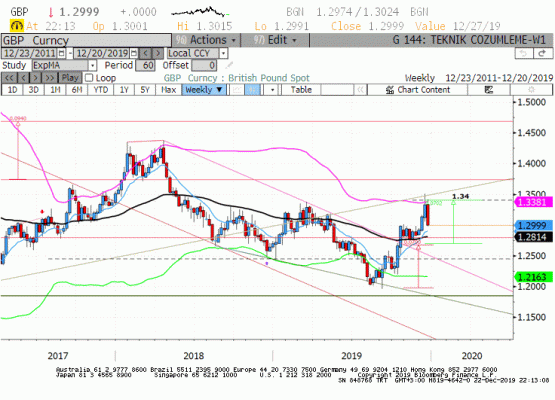 1.30 seviyesi destek olarak güncelliğini koruyamazsa 1.29-1.28 ara destek bölgesine kadar satışlar devam edebilir. Haftalık bazda beklediğimiz minimum seviye ise 1.27 desteği ile sınırlıdır. 1.30 üzerinde tutunma sağlanması durumunda ise 1.34 direnci takip edilebilir. Brexit ile ilgili haberlere bağlı olarak 1.27-1.34 aralığında dalgalı bir seyir bekliyoruz.