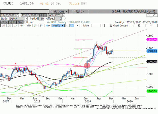 Teknik olarak 1480 usd üzerinde yapılan pozitif haftalık kapanış olumlu bir sinyal ve fiyat hareketinde 1493 - 1500 usd seviyelerine hareket olabileceğine işaret ediyor.