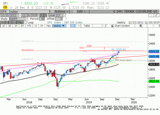 Cuma günü 1.8 trilyon usd ile 19 eylülden bu yana en yüksek hacim gerçekleşirken, geçen hafta toplamında ise 15 marttan beri görülen en yüksek hacim 4.2 trilyon usd ile kayıtlara geçti. Genelde işlem hacminin bu şekilde patlama yaptığı dönemlerden sonra yorulma ile birlikte piyasalarda tepkisel hareketler gözlemlenir. 3235 formasyon hedefine de gelinmesi ve haftalık bazda RSI'ın 82 günlük bazda ise 81 değerine ulaşması da işlem hacminin çok yüksek seviyelere ulaşması ile birleşip tepki satışlarını tetikleyebilir. Ayrıca önümüzde hafta ABD'de yeni yıl tatilinin başlayacak olması da hacimlerde düşüş ve sakin seyir ile birlikte endekste gerilemeye yol açabilir.