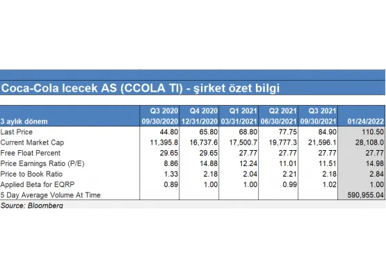 Yiyecek İçecek Sektörü-Coca Cola : Dünyadaki en büyük rekabet avantajına sahip şirketlerden biri olan CCOLA, enflasyonist ortamda fiyat artışlarını satışlarına yansıtmakta zorlanmıyor. 2021 yılını da oldukça iyi geçiren şirket satışlarını %46, faaliyet karını yine aynı oranda %46, net karını ise %51 oranında artırdı. Şirket yurt dışı faaliyetlerindeki büyümesini sürdürmeye devam ediyor. Özbekistan pazarına girişi oldukça önemli bir fırsat sağlıyor. %60 oranında yurt dışı operasyonu olan CCOLA, TL’deki değer kaybına karşı da güvenli konumda.