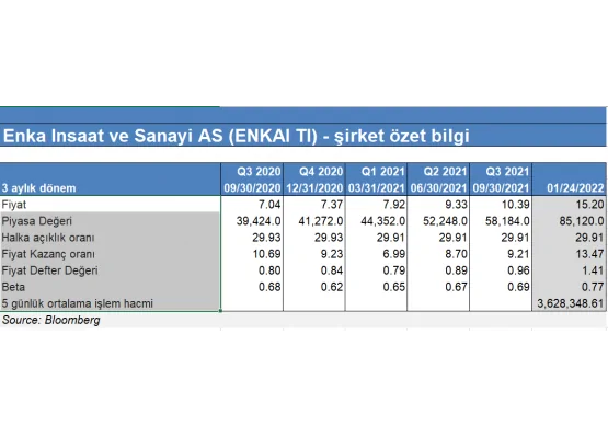 Şirket yatırımcılarına düzenli şekilde temettü dağıtan bir şirket olarak göze çarpıyor, bu yılın ilk temettü ödemesini yapan şirket ENKAI oldu. Potansiyel risklerden bahsetmek gerekirse, Rusya’da önemli operasyonları olan şirketin son zamanlarda ortaya çıkan Rusya-Ukrayna krizinden etkilenme olasılığından bahsedebiliriz.