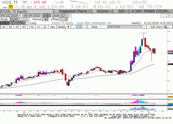 Şirket 2020 mali yılında net karını yıllık %2.3 artış ile 1.81 mia TL’ye yükseltti. Son çeyrekte 363 mio TL’lik kar rakamı 603 milyon TL olan beklentinin altındaydı. Yüksek üretim ve operasyon maliyetleri şirketin kar marjında gerilemeye sebep olmuş görünüyor. Pandemi nedeni ile altın üretimi ve satış miktarı geçtiğimiz yılın aynı dönemine göre gerilerken, altın fiyatlarının dolar bazında artmasına rağmen şirket karlılığı olumsuz etkilendi. Genel olarak baktığımızda sonuçların hisse performansı üzerinde etkisi kısa vadede olumsuzdu. Öte yanda yılın ikinci çeyreğinde küresel enflasyon beklentisi ve altın fiyatlarında yükseliş ile sektöre ilgi artabilir. Yaz sezonu ile artması muhtemel altın talebinin de satışlara olumlu yansıyacağını düşünüyoruz. Şirketten gelen açıklamalara göre şirket 2020-2023'te 15 ton altın çıkarmayı hedefliyor. KOZAL, 2021 yılsonuna kadar Ağrı'da bulunan tesisine 300 milyon dolarlık yatırım yapabilir. Şirketin beklenti altında kalan son çeyrek bilançosuna rağmen 2021 yılı beklentileri ile 'endeks üstü getiri' sağlayabileceğini düşünüyoruz.