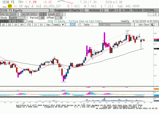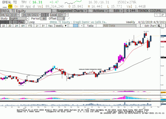 Şirket 2020 bilançosunda satışların 32.05 mia TL olduğunu ve net kar rakamının 3.31 mia TL olarak gerçekleştiğini gördük. Ereğli demir çelik hisse senedi 2021 yılında küresel çelik fiyatlarında artıştan aldığı destek ve gelirlerinin ABD Doları cinsinden olması ile avantajlı görülüyor. Özellikle 2021 yılının ikinci yarısında beklenen küresel ekonomik toparlanma sektör için pozitif iken Erdemir 2020 yılını net nakit pozisyonu ile kapattı. 984 milyon dolar net nakit pozisyonu ile şirket TL’n 2021 ilk çeyrek değer kaybına karşı dirençli duruyor. İç piyasada talep güçlü devam ederken siparişler yığılıyor. Yükselen çelik fiyatları güçlü talep ile Erdemir için 2021 yılı pozitif bir yıl olmaya devam edecek. Küresel ekonomik büyüme artan çelik fiyatları ve güçlü iç talep ile Erdemir hisse senedinde kapanış fiyatı üzerinden yüzde 25.4 getiri potansiyeli ile “Endeks Üzerinde Getiri” tavsiyemizi koruyoruz.