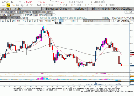 2020 yılında pandemi koşullarının kredi portföy riskini bozacağı endişesi ile BIST100 endeksinde yükselişe katılmayan bankacılık sektörü 2021 yılında yüksek faiz ortamı ile zayıf performansını sürdürüyor. Sektör genelinde azalan karşılık giderleri 2021 yılında özkaynak karlılığında toparlanma yaratabilirdi. Ancak son iki haftalık harkette yükselen faiz ortamı ve TL'in değer kaybı bankacılık sektöründe baskı oluşturdu. Bu süreçte yabancı ilgisi ile öne çıkan Garanti bankasında yaşanan sert satış baskısı ve kısa vadede yüksek faiz ortamının sektör olumsuz etkisi ile hedef fiyatımızı 8,50 olarak aşağı yönlü revize ederken hissenin orta vadede 'endekse paralel getiri' sağlayacağını düşünüyoruz.