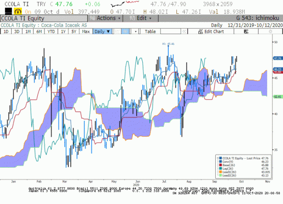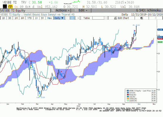 Teknik olarak: Hisse 06 Mayıs yüksek seviyesi 78.45’i yukarı yönlü kırmış olup, 24 Şubat yükseği 88.00 TL’ye doğru yükseliş sürebilir. Hisse 2020 yılı için 90.00 TL hedef fiyat ile son kapanış üzerinden yüzde 12 yükseliş potansiyeli barındırıyor.