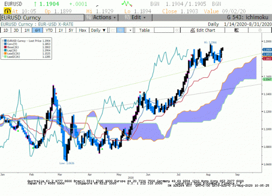 Haftanın ilk işlem günü EUR/USD paritesi gün içinde 1,1884 ile 1,1964 aralığından hareket ederek akşam saatlerinde 1,1940 seviyesinde dengelendi. Geçtiğmiz hafta FED Başkanı Powell'dan gelen açıklamalar ile volatilitenin arttığını ve FED'in gevsek para politikasının bir süre daha devam edeceği ve enflasyon hedefini yüzde 2 den yıllık ortalama yüzde 2 ye değiştirmesi ile dolar gelişmekte olan para birimleri karşısında kısmi değer kaybı yaşadı. Diğer yandan Euro Bölgesi'nden gelen ekonomik veriler ekonomik aktivitedeki toparlanmaya dikkat çekiyor. Bugün gün içinde Avrupa'dan gelecek PMI verileri yakından takip edilecek.
