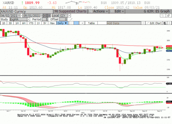 Genel olarak güniçinde yatay hareketlerin hakim olduğu Ons Altın 1805 üstü kapanışlarla birlikte 1830 dolara doğru bir hareket gerçekleştirebilir.