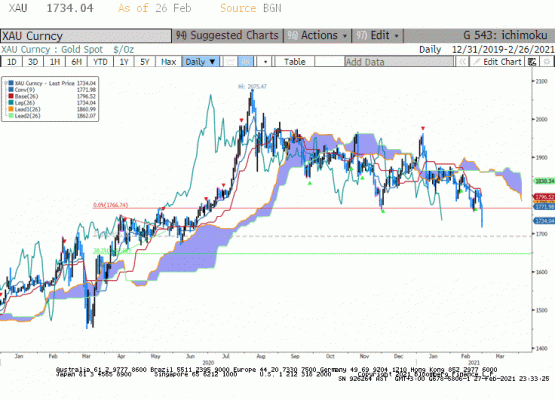 Altın, Şubat ayında yükselen tahvil faizleri ve güçlenen ABD dolarından dolayı son 2016 yılının Kasım ayından sonraki en kötü ayını geçirdi.10 yıl vadeli ABD Hazine tahvili faizi Şubat ayının başarında yüzde 1,09 seviyesinde bulunurken enflasyonun yükseleceğine ve ekonomik toparlanmaya dair beklentilerle Şubat ayını 32 baz puan yükselişle kapattı. Artan ABD Hazine tahvili faizi küresel risk iştahı üzerinde baskı oluştururken altın gibi faize dayalı olmayan varlıkların fiyatlarını da aşağı yönlü etkiliyor. Hafta başlangıcı itibari ile Temsilciler Meclisi'nin onayladığı 1,9 trilyon dolarlık paketi senatonun da onaylaması halinde kıymetli metalde tepki alımlarının ön plana çıktığını görebiliriz.