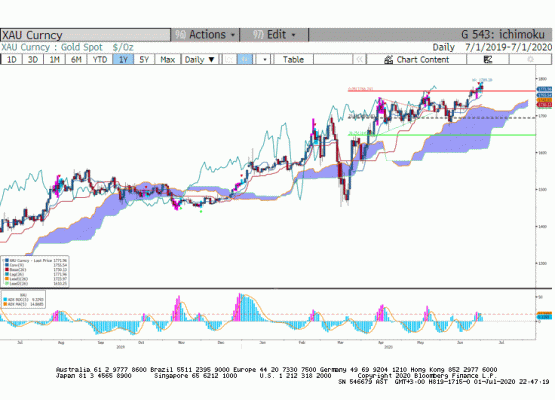 Küresel piyasalarda ikinci dalga beklentileri devam ederken yatırımcı talebi hisse senedi piyasaları ve altına kaymaya devam ediyor. Geçtiğimiz gün 1785$ seviyelerini test ettikten sonra 1770$ seviyesine gerileyen ons altında yükseliş trendini hala devam ettiğini görüyoruz.
