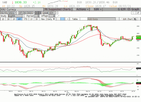 Teknik olarak 200 günlük üssel hareketli ortalamanın üzerine doğru bir hareket gerçekleştiren altın bu seviyenin üzerinde kapatırsa ve teyit edilirse yükseliş hız kazanacaktır ve alıcılar oldukça güçlü olacaktır.Yükseliş hareketi devam ettiği sürece 1830 seviyelerinin test edilmesi bekleniyor.