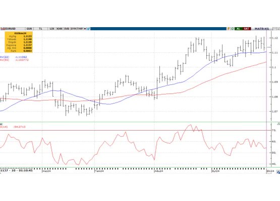 EURUSD; Ortadoğu’da artan Jeopolitik risk ve küresel savaş endişeleri ile beraber dolar endeksi 101 seviyesi üzerinde fiyatlanıyor. Pariteye baktığımızda ise 0,60 düşüşle günü 1.1067 seviyesinden kapattığını takip ettik. Bugün sabah itibari ile de satıcılı seyrin devam ettiği gözlemleniyor. Dün ki bültende EUR/USD paritesinin, üst üste dört gün 1,12 seviyesinin üzerine çıkmayı denedikten sonra bu bölgede tutunamayıp geri çekildiğini ve teknik olarak bu hareketlerin yukarı yönlü hareketin momentum kaybettiğine işaret ettiğini belirtmiştik. Kısa vadede paritenin 1,10 – 1,13 aralığında bir süre daha vakit geçirmek isteyebileceğini değerlendiriyoruz. Yukarı yönlü direnç seviyeleri 1,1140, 1,1180 ve 1,1214; aşağı yönlü destek seviyeleri ise 1,11, 1,1080 ve 1,1050 olarak takip edilebilir.