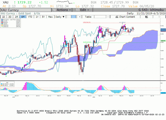 Teknik olarak, 1.726 dolar/ons seviyelerinden işlem gören altında 1.720 dolar seviyesine doğru geri çekilme söz konusu olabilir. Yükselişlerde ise 1750$ seviyesinin üzerinde kapanışlar kademeli alımları beraberinde getirebilir.