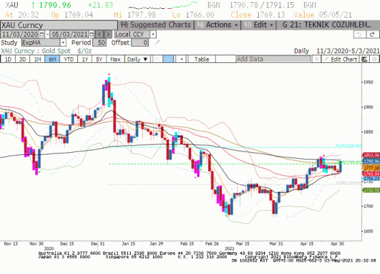 Haftanın ilk işlem gününde ons altın fiyatlamasında yukarı yönde açılış ile 1765 seviyesinden aldığı destek ile rahatladı. Bu hafta 1800 dolar üzerinde kapanışlar ile alıcılar kontrolü ele almadan tahvil başta olmak üzere iletişimde olduğu piyasaların hareketi altın fiyatlamasında etkili olmayı sürdürecektir. ABD 10 yıllık tahvil faiz oranları 1.64 seviyesinde geçen hafta kapanışına yakın seyrederken Dolar Endeksi 91.30 endeks üzerinde kalmak istemedi. Bu hafta ortasında açıklanacak olan ADP özel sektör istihdam değişimi ve tarım dışı istihdam raporu Dolar Endeksi ve piyasa genelinde etkili olacak. Nisan ayında da ABD’de istihdam artışının süreceği ve FED ’in yılsonu %4.3 olan işsizlik oranı hedefine ulaşacağı beklentisi ile ülkede artan enflasyonist eğilim altın fiyatları için tehdit olabilir. Öte yanda ABD ekonomisi enflasyonda yükseliş için kapıyı araladığına göre bir süre sonra altında enflasyon beklentini satın almaya başlayarak yükseliş eğilimine girebilir. Kısa vadede 1800 dolar üzerinde kapanışlar görmeden bu beklentiyi satın almak doğru olmayacaktır. Ancak özellikle bugün test edilen 1798 ardından ons altın yükseliş için kendine çıkış yolu arıyor.