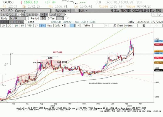 Teknik olarak 1625-1611 usd seviyeleri gün içinde kuvvetli destek, 1665 seviyesi ise yukarı yönlü hareketlerde güçlü direnç olarak izlenmelidir.