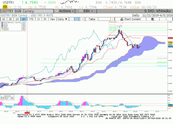 Paritede 6,75 seviyesinin üstünde kapanışlar önemli olmaya devam etmekte. ABD tarafında protestolar devam ederken piyasanın küresel iyimserliği fiyatlamaya devam ettiğini görmekteyiz. Paritede 6,75 seviyelerinin üzerinde kalındığı sürece orta ve uzun vadede yükseliş trendinin kırıldığını söylemek için erken.