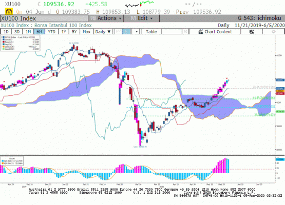 Koronavirüs salgınına ilişkin tedbirlerin hafifletilmesi ile ekonomilerdeki toparlanma ve hükümetlerden birbiri ardına gelen teşvikler, küresel piyasalardaki risk iştahını canlı tutmaya devam ediyor. Ancak geçtiğimiz gün hem ABD hem de Avrupa piyasalarının satıcılı kapatması,, bugün gün içerisinde endekste de bir miktar satış yaşanmasına sebep olabilir. Bu sebeple gün içerisinde 109.500 desteği önemli olacak