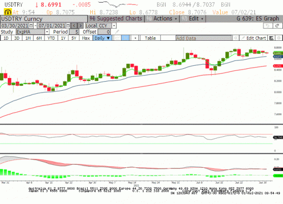 Geçtiğimiz haftanın önemli gelişmelerinden olan ABD tarım dışı istihdam verisi beklenti 720bin iken 850 bin olarak gerçekleşti. Bir diğer önemli veri olan ABD İşsizlik verisi ise yüzde 5,9 olarak açıklandı. Açıklanan veriler ardından hafif alıcılı bir seyir görülürken gün sonuna doğru hareketin kalıcı olmadığı görüldü.