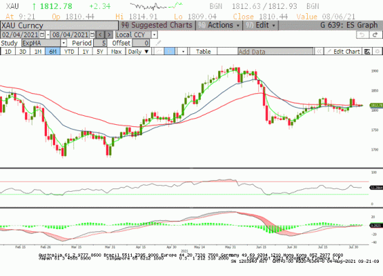 4 Ağustos işlem gününü oldukça hareketli geçiren Ons Altın 7. kez 1830 seviyelerine test etti ve yine bu seviyelere tutunmayı başaramadı. Bu seviyelerden sürekli olarak tepki satışlarıyla karşılaşan ons altın teknik olarak da bu seviyelerin üzerine çıkmadığı sürece yükselen trendin gücünden bahsedilemiyor.