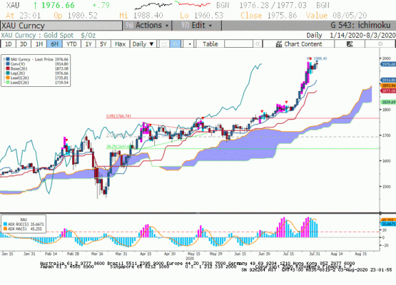 Altın fiyatları, yatırımcıların dikkatlerini koronavirüs pandemisinin ekonomi üzerindeki olumsuz etkilerini gidermek amacıyla yeni teşviklerin gelebileceği beklentilerine, ABD reel faizlerinde devam eden düşüşe ve artan jeopolitik risklere çevirmesi ile birlikte tarihi rallisini güçlendirdi. Bunun sonucu fiyatlar 2,000 doları aşarak yeni rekor zirvelere ulaştı.