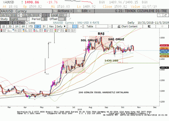 1480 usd desteğine dikkat edilmelidir. Bu seviye son dönemde Altın ons piyasası açısından en önemli destek oldu. 1480 kırılırsa 1459-1430 bölgesine doğru daha sert bir düzeltme görebiliriz. Ancak 1480 üzerinde tutunma devam ederse 1480-1525 aralığında yatay hareket devam edecektir. Günlük bazda maksimum fiyat beklentimiz 1500 usd seviyesidir.