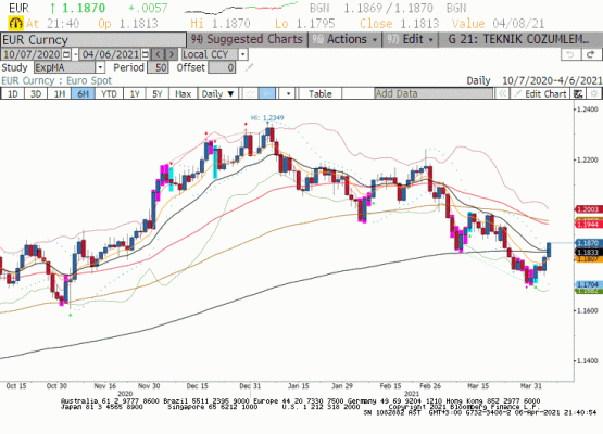 Son iki işlem gününde Dolar Endeksinden aldığı cesaretle 1.1700 civarında olan 60 haftalık üssel hareketli ortalamasından aldığı destek ile euro/dolar paritesi 1,1870 seviyesine yükseldi. Şimdilik teknik olarak aşırı satım bölgesinden gelen tepki alımları olarak görülen yükseliş pariteyi 1,1950 seviyesine taşıyabilir. ABD istihdam raporu ardından Dolar endeksinde yükselişin devam etmesini bekleyen döviz piyasası yanılgıya düştü.